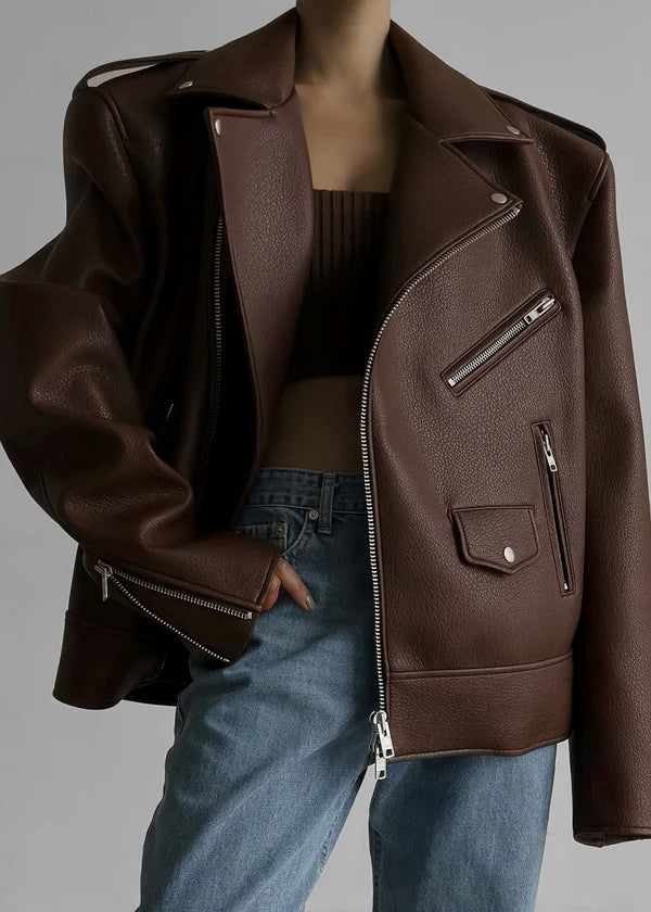 Layer this jacket over a casual tee and jeans for a classic biker style, or wear it over a dress to add edge to a more polished look. This versatile piece seamlessly transitions between day and night, bringing effortless sophistication to any wardrobe.