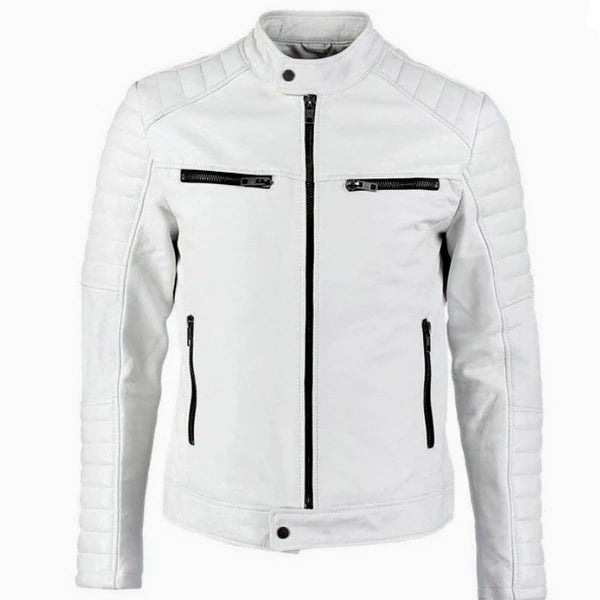 Pair this lambskin motorcycle jacket with slim-fit jeans and boots for a quintessential biker look, or layer it over a casual tee for a laid-back, everyday outfit. The black zipper detailing and sleek design make it a versatile addition to any wardrobe, offering a seamless blend of rugged charm and refined elegance.