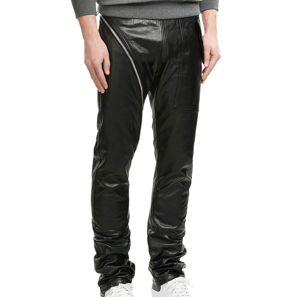 These leather pants are perfect for adding a touch of avant-garde flair to your wardrobe. The asymmetrical zipper detail stands out as a bold design element, making them ideal for pairing with a minimalist top or a statement jacket. Whether you’re heading out for a night on the town or want to make an impression at a special event, these pants offer both exceptional style and functionality.