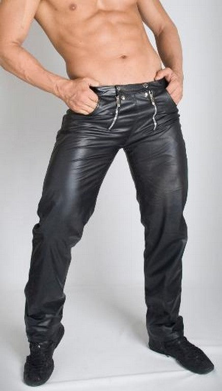 Introducing the Men's Black Genuine Leather Distinctive Pants from Travel Hide, designed to combine modern style with practical features. Made from high quality leather, these pants boast a sleek design and a secure zipper closure. With two back pockets, they offer convenience without compromising on aesthetics. Perfect for both casual outings and formal occasions, these pants ensure you always look your best.