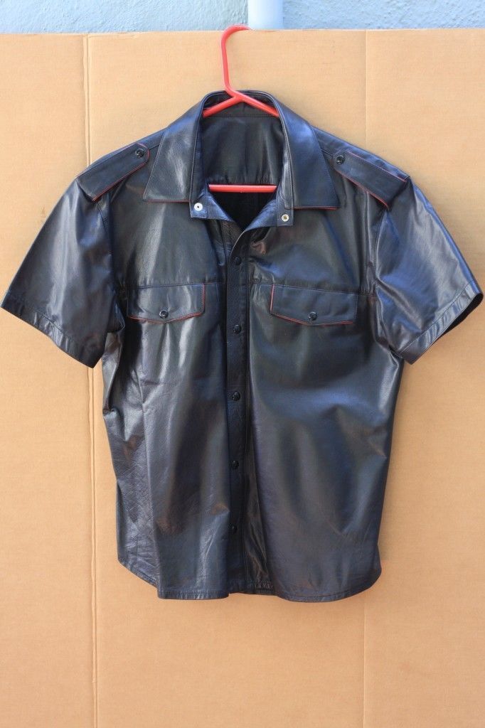 Travel Hide's Men's Black Leather Short Sleeve Shirt is designed to make a bold statement. Crafted from genuine leather, this shirt features a slim fit, snap button closure, two front pockets, and unique shoulder loops. Its modern design is perfect for adding an edge to your casual and semi-formal ensembles.