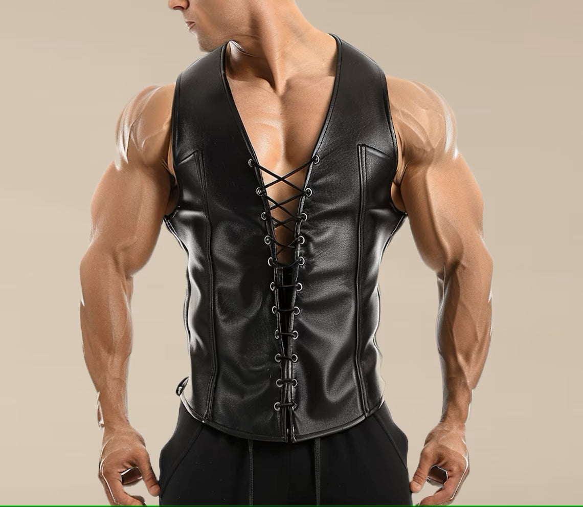 Style Notes: This leather vest is perfect for adding a touch of sophistication to any outfit. Wear it over a crisp shirt for a sharp, polished look, or pair it with a casual tee for a more laid back vibe. The laced closure provides an adjustable fit, making it both functional and fashionable. Whether you're dressing up or down, this vest is sure to make a statement.
