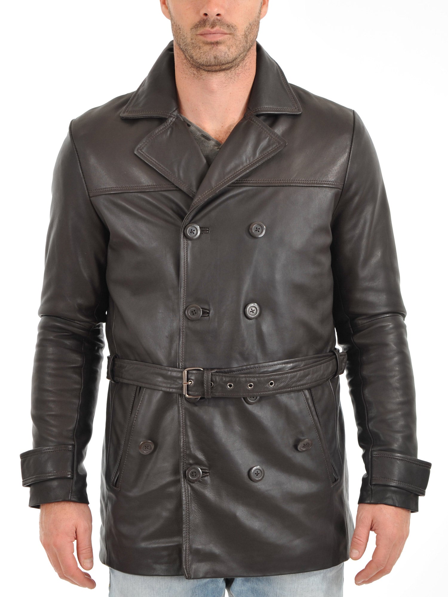 Transform your outerwear collection with this men’s double breasted black leather trench coat from Travel Hide. Crafted from premium genuine leather, this trench coat offers a classic design with a modern edge. The double breasted button closure ensures a timeless silhouette, while the notched lapel collar adds a sophisticated touch. The waist belt allows for a tailored fit, and the two side pockets provide practical storage. Button cuffs complete the elegant look, making this trench coat a versatile piece that seamlessly transitions from formal occasions to everyday wear.