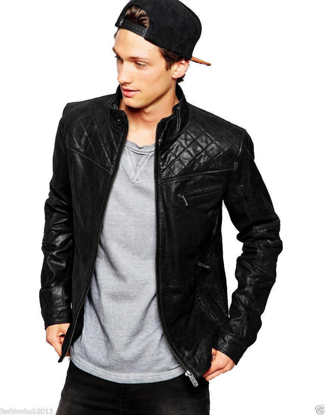 Ride with confidence in this men’s black leather motorcycle jacket from Travel Hide. Designed for the adventurous spirit, this jacket features an all-black aesthetic with a sleek zipper closure and matching zipper cuffs. The snap button collar adds a touch of classic biker flair, while the quilted shoulders offer both style and extra protection. Perfect for both the open road and urban settings, this jacket ensures you make a statement wherever you go.