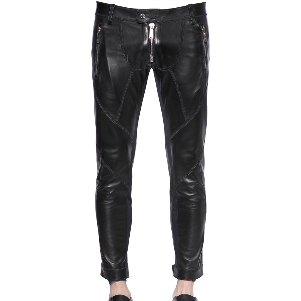 Elevate your wardrobe with these Men's Slim Fit Cropped Leather Pants from Travel Hide. Perfectly tailored for a sleek silhouette, these pants feature a modern cropped design and premium genuine leather construction. The standout zippers at the cuffs add a distinctive touch, while the zipper and button closure ensures a secure fit. Equipped with functional zipper pockets, these pants offer both style and practicality, making them a versatile addition to any fashion-forward collection.