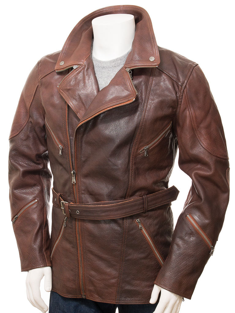 Make a bold statement with this men’s vintage brown leather trench coat from Travel Hide. Crafted from genuine leather, this trench coat features a deep brown hue that exudes timeless elegance. The zipper closure and accents, along with the waist belt, add a modern twist to the classic design. Satin lining ensures comfort, while zipper pockets and cuffs provide functionality and style. Perfect for those who appreciate the fusion of classic trench coat style with contemporary details, this piece is both practical and stylish.