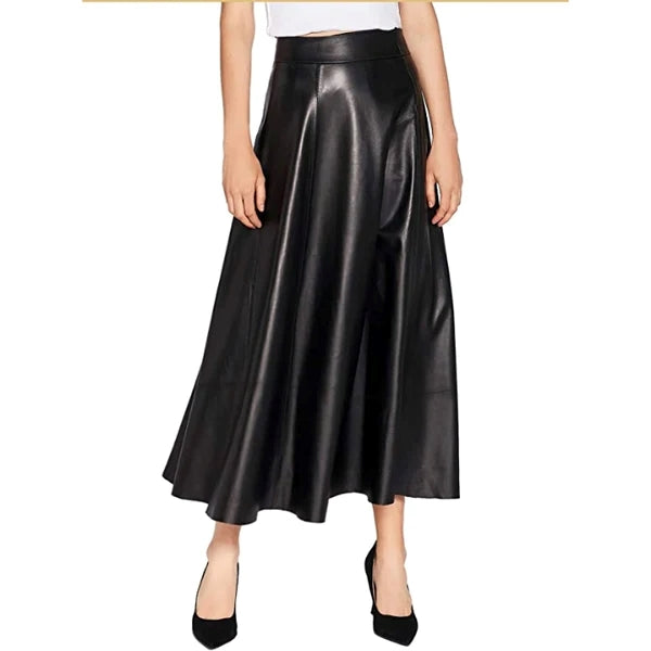 Pair this A-line leather midi skirt with a tucked-in blouse and heels for an elegant office look, or dress it down with a cozy sweater and ankle boots for casual sophistication. Its timeless design and premium materials make it a must-have addition to your wardrobe.