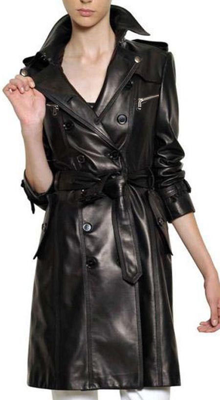 Wrap yourself in sophistication with our Women's Leather Mid-Length Black Trench Coat. Crafted from genuine leather, this coat by Travel Hide combines timeless style with modern functionality. Featuring a classic button closure and a self-tie belt for adjustable cinching, it offers both elegance and comfort, making it a wardrobe staple for all seasons.