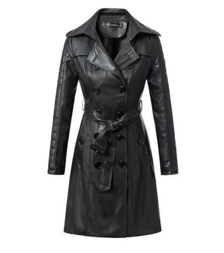 Wrap yourself in sophistication with our Women's Leather Mid-Length Black Trench Coat. Crafted from genuine leather, this coat by Travel Hide combines timeless style with modern functionality. Featuring a classic button closure and a self-tie belt for adjustable cinching, it offers both elegance and comfort, making it a wardrobe staple for all seasons.