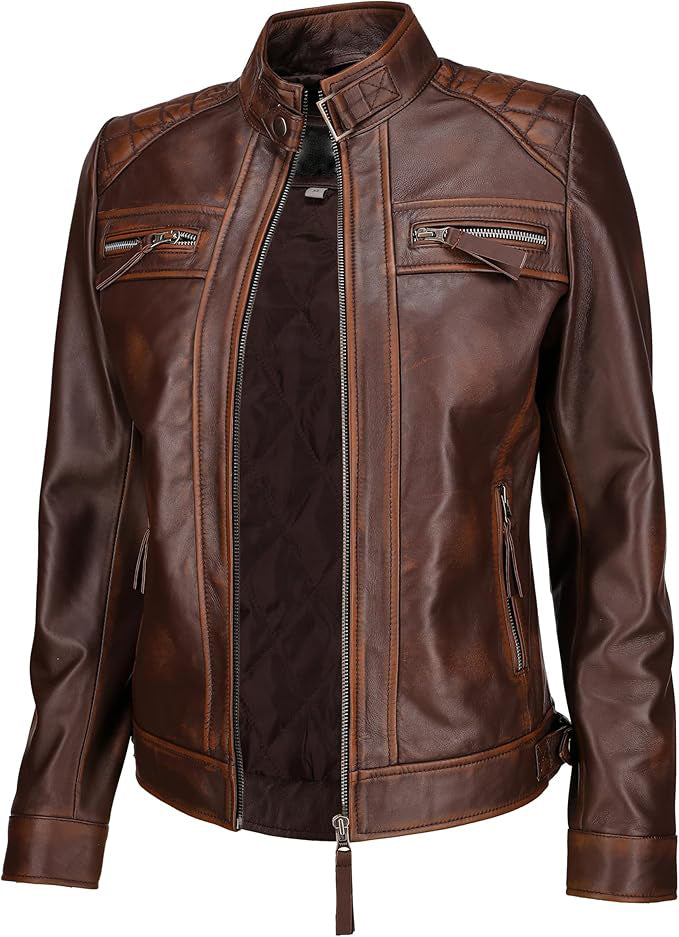 Style Notes: These distressed leather biker jackets pair effortlessly with jeans and boots for a classic rock inspired look, or over a dress to add a touch of edge. Whether you choose the black, brown, or white option, each jacket brings its own unique charm and timeless appeal.